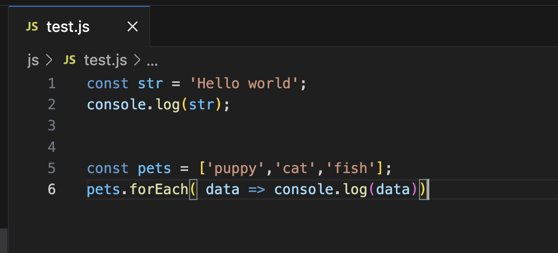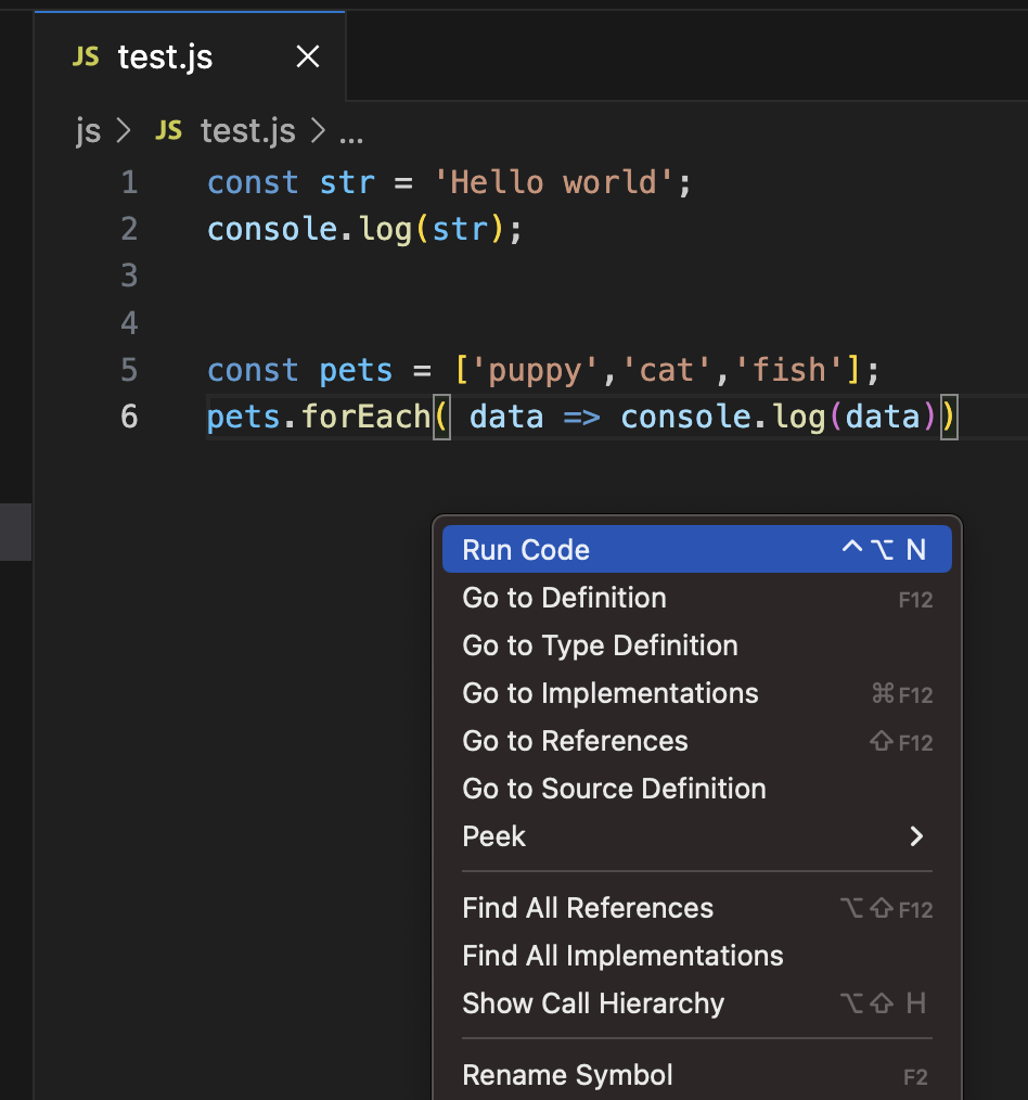 STEP 03 . 실행할 js 파일을 오픈합니다. test.js 파일을 아래와 같이 만들어봅니다.