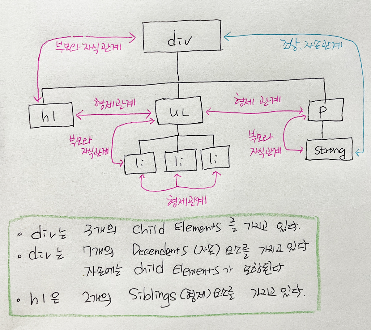 - DOM 트리구조를 이해해야 CSS에서 HTML을 선택할 때에도 잘 이해할 수 있게 됩니다.