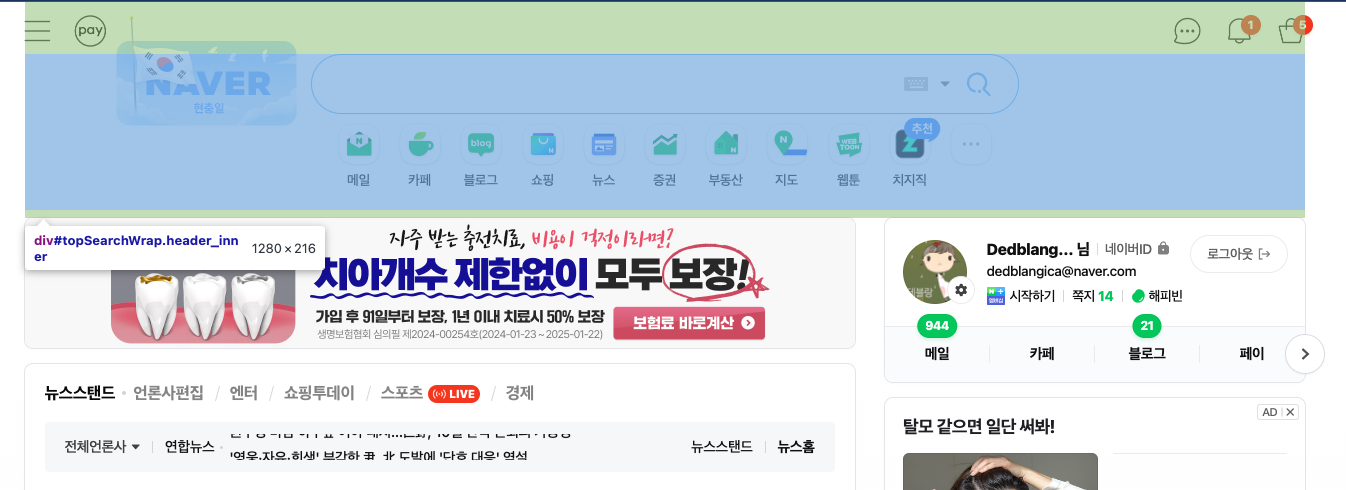 02. 사이트 분석 : 네이버 홈화면의 영역은 어떻게 분리 되었는지 살펴보자(2024년 6월기준)