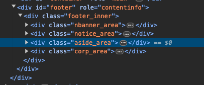 하단의 저작권자 정보 및 약관이 들어간 부분을 <footer>로 마크업 한 것도 볼 수 있다.