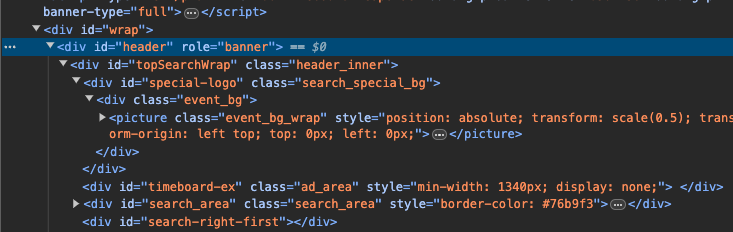 위의 영역을 <header> 태그로 마크업 하였다.
