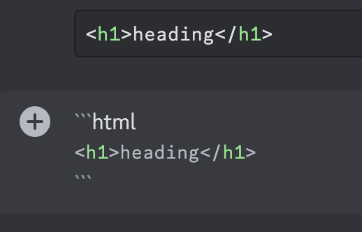 사용방법 : 백틱기호 ```html 로 시작 + 원하는 코드 적기 + ``` 로 마무리하여 끝낸다.
